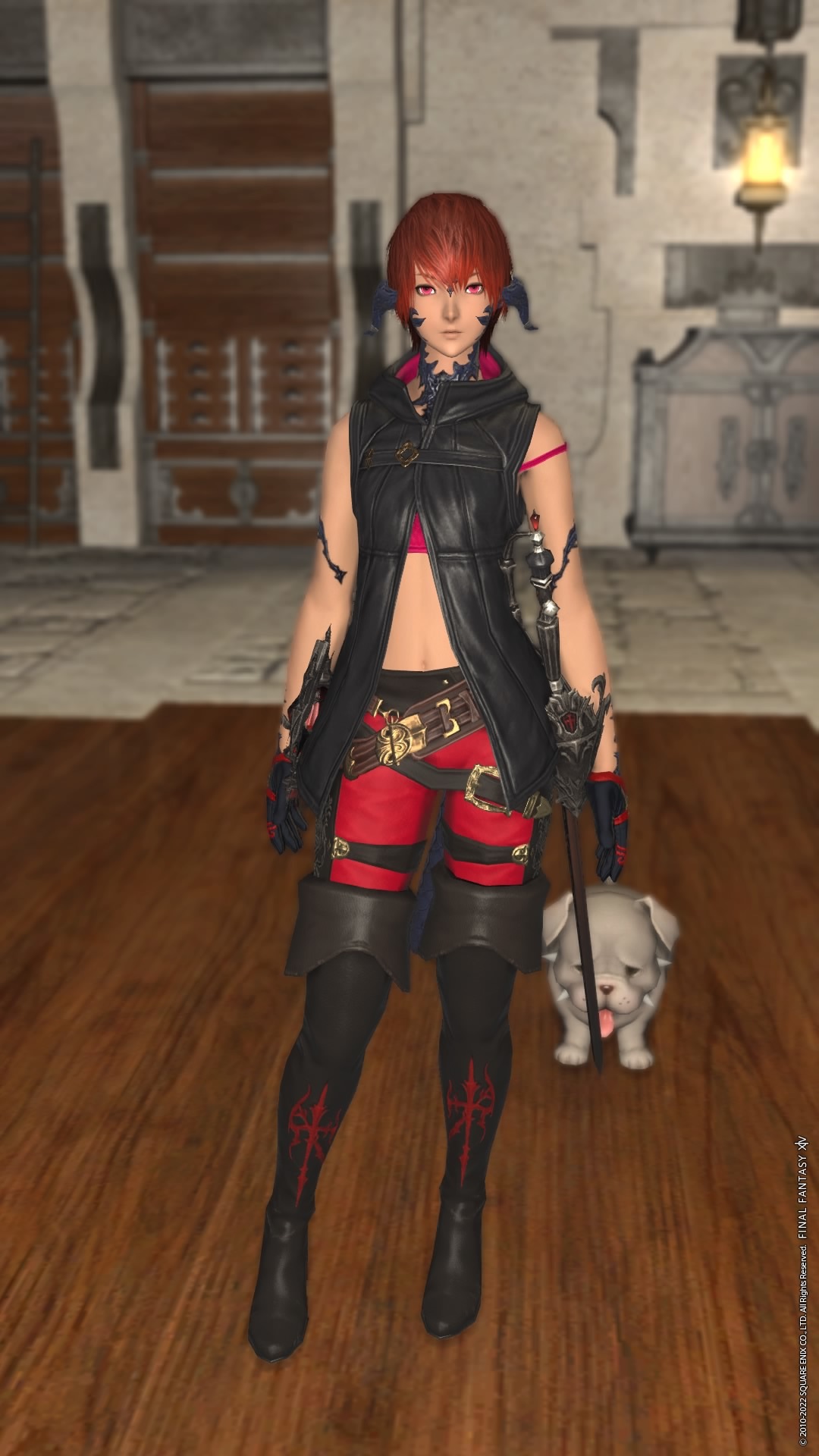 FEATURES: Covered in scales like most Au Ra. She has an birthmark in the shape of an X on her right arm and various scars from her routine of picking fights with people bigger than her.
